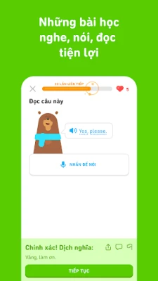 Duolingo giúp bạn học hơn 40 ngôn ngữ một cách vui nhộn và miễn phí. Ứng dụng cung cấp các bài học ngắn gọn, tập trung luyện nghe, nói, đọc, viết. Phát triển từ vựng và ngữ pháp vững chắc ngay hôm nay với Duolingo.