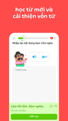 Với Duolingo, việc học ngôn ngữ trở nên vừa thú vị vừa hiệu quả vượt trội. Các bài học được thiết kế theo phong cách trò chơi cuốn hút, kết hợp cùng dàn nhân vật hoạt hình ngộ nghĩnh, giúp bạn rèn luyện và củng cố toàn diện các kỹ năng nghe, nói, đọc, viết một cách tự nhiên và dễ dàng. Nền tảng này không chỉ mang đến niềm vui mà còn dựa trên nền tảng khoa học vững chắc. Các phương pháp giảng dạy được các chuyên gia ngôn ngữ của Duolingo nghiên cứu và chứng minh giúp người học ghi nhớ kiến thức lâu dài, đảm bảo quá trình học tập thực sự có giá trị. Bạn sẽ luôn được theo dõi tiến trình của mình, đạt được các mốc thành tích và nhận phần thưởng xứng đáng, từng bước hình thành thói quen học tập bền vững mỗi ngày.