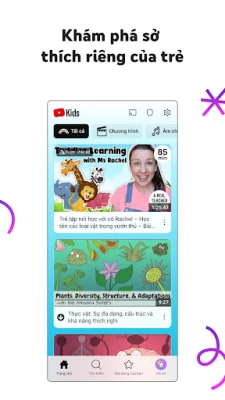 Lưu ý quan trọng: Để có trải nghiệm tốt nhất, cha mẹ cần thực hiện thiết lập ban đầu. Ứng dụng có thể hiển thị nội dung thương mại do những người sáng tạo trên YouTube sản xuất (không phải quảng cáo trả phí). Thông tin về quyền riêng tư đối với Tài khoản Google được quản lý qua Family Link hoặc Chính sách quyền riêng tư của YouTube Kids (khi không đăng nhập) sẽ được áp dụng.